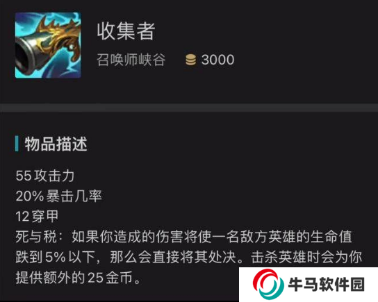 首先是新裝備收集者、不朽盾弓的加入。收集者,該裝備不僅僅提供攻速暴擊,其特殊效果為當(dāng)敵人處于5%的血量可以立即對(duì)其進(jìn)行處決,也就是說(shuō)血量不足時(shí)可以直接斬殺。不朽盾弓,該裝備與收集者恰恰相反,屬于保護(hù)性裝備,其效果為自身血量降低到一定數(shù)值后,會(huì)自動(dòng)生成一個(gè)護(hù)盾吸收傷害。這兩件裝備加入手游可謂是盾與矛。此外,還對(duì)綠叉、魔宗以及吸藍(lán)刀這三件裝備進(jìn)行了調(diào)整,使其更加適用于消耗性英雄。比如寒冰、維魯斯、杰斯等。