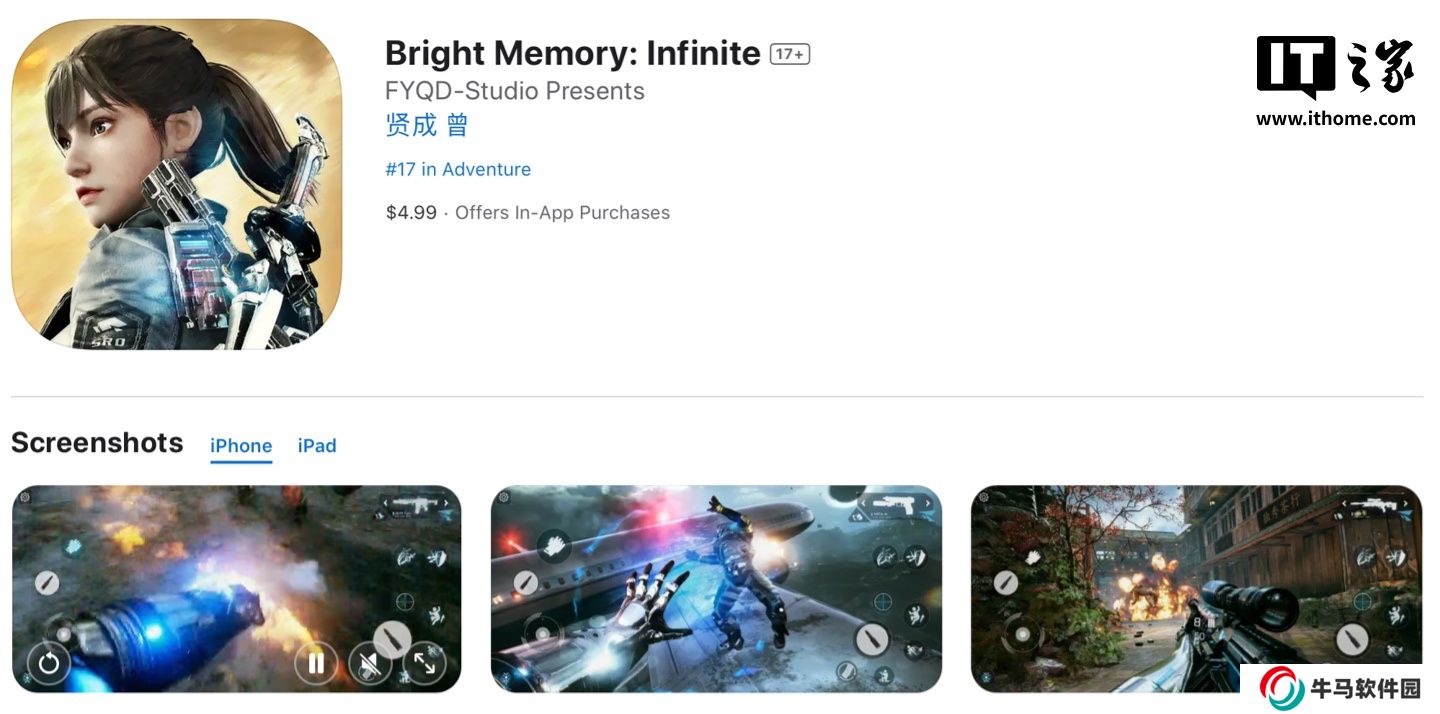 本站 1 月 18 日消息,飛燕群島工作室旗下國產(chǎn)射擊游戲《光明記憶:無限》手游版已正式登陸iOS及安卓平臺,采用買斷制銷售,國區(qū)定價(jià)為20元,美區(qū)定價(jià)為4.99 美元(本站備注:當(dāng)前約 36.6 元人民幣)。