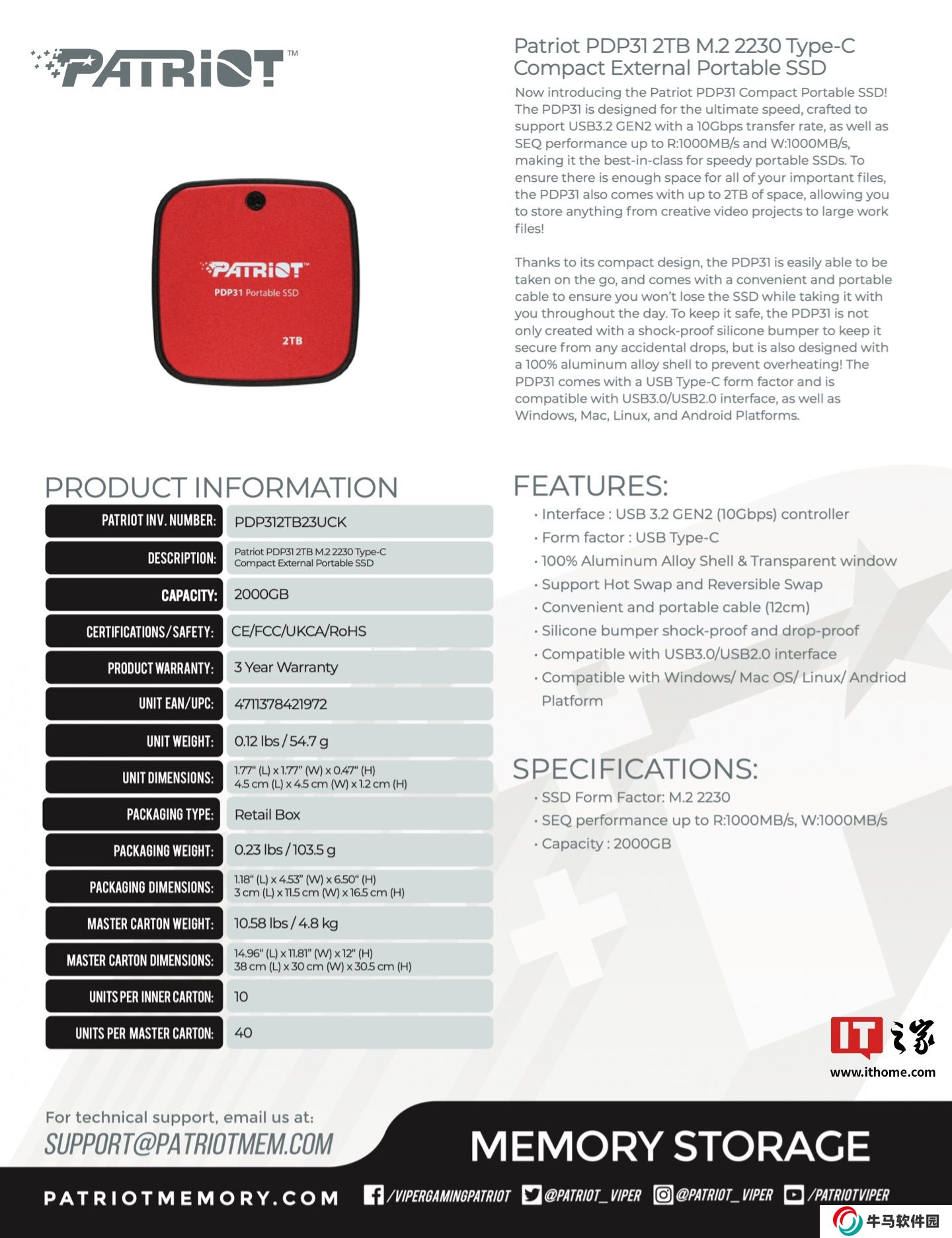 本站 1 月 25 日消息,博帝(Patriot)現(xiàn)已在海外推出一款型號為 PDP31 的移動硬盤,這款移動硬盤主打外觀設(shè)計,整體造型小巧,不過目前官方暫未公布具體價格信息。
