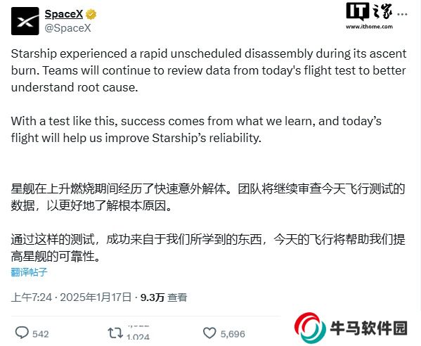 雖然超重型助推器成功回收,但火箭的上面級(jí)部分(本站注:也就是“星艦”本體)在飛行僅 8.5 分鐘后就發(fā)生異常,遙測(cè)信號(hào)丟失,經(jīng)確認(rèn)是在升空過(guò)程中解體,沒(méi)能釋放模擬衛(wèi)星,SpaceX 將在未來(lái)幾天內(nèi)發(fā)布進(jìn)一步的分析數(shù)據(jù)。