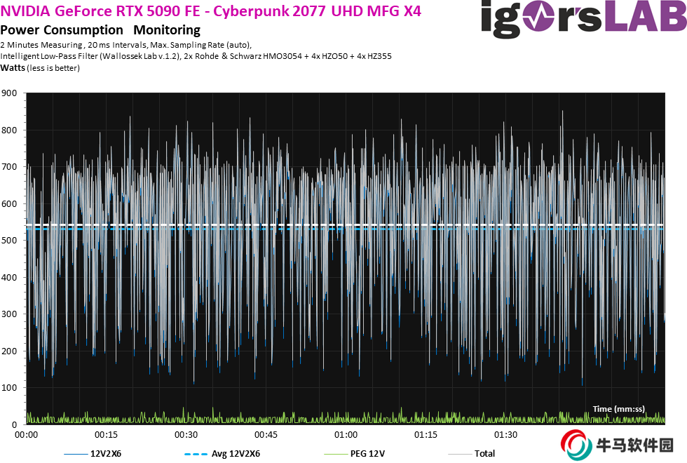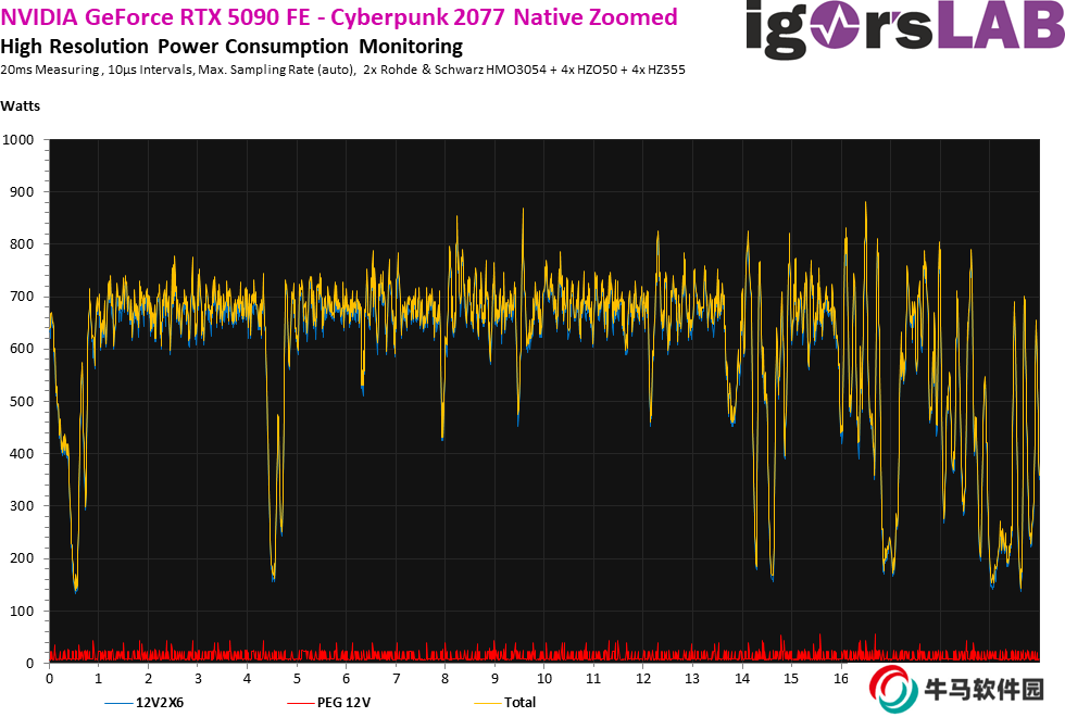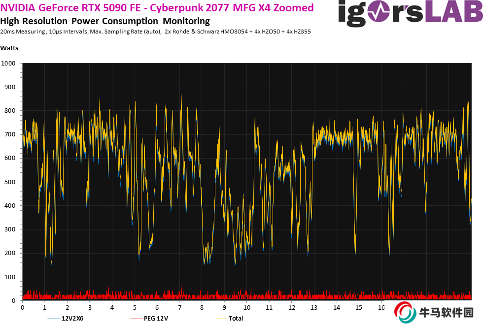 本站 1 月 24 日消息,外媒 igor"s LAB 今日對(duì)英偉達(dá) RTX 5090 顯卡進(jìn)行了性能測(cè)試,其中能耗監(jiān)控部分較為引人關(guān)注,其表明 RTX 5090 的在不開啟 DLSS、多幀生成等技術(shù)下,平均游戲功耗為 600W,瞬時(shí)功耗可達(dá) 900W,這無疑對(duì)于電源性能提出了更高的要求。