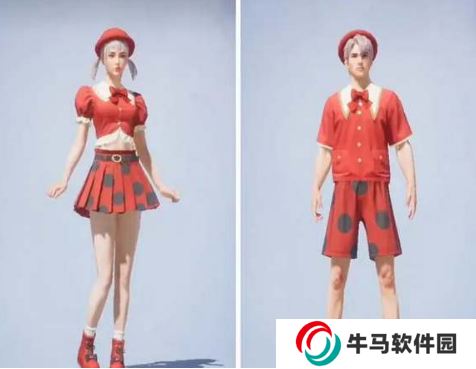 2、100級(jí)獎(jiǎng)勵(lì)皮膚-妙紅點(diǎn)點(diǎn)。女角色是可愛(ài)的雙馬尾可俏皮短裙,男角色則是波點(diǎn)的褲子。