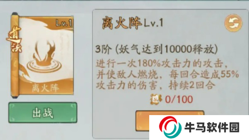 1、裝備離火陣,攻擊敵人的同時產(chǎn)生燃燒效果,造成額外傷害。