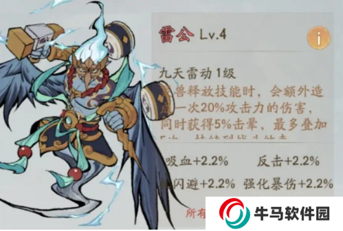 1、首先選擇“雷公”,在角色釋放技能時,可以額外造成20%傷害且獲得5%擊暈。