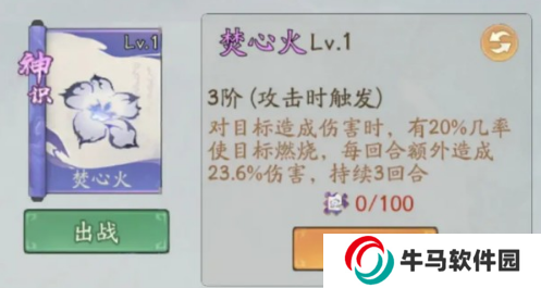 2、焚心火到達3階時,可以在攻擊時有20%機率產(chǎn)生燃燒效果。