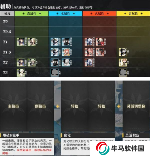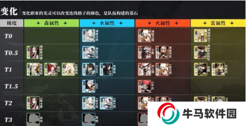 玩家根據(jù)【主輸出】+【副輸出】+【轉(zhuǎn)色】+【轉(zhuǎn)色】+【靈活調(diào)整位】進(jìn)行配對,就能較為輕松地開荒游玩了。