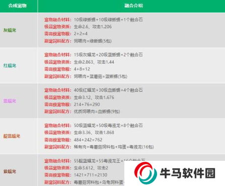 藍(lán)蝠龍:40級(jí)紅蝠龍+30級(jí)血蜥蜴+4個(gè)融合石