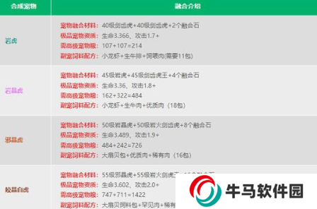 邪晶虎:50級(jí)巖晶虎+50級(jí)巖火劍齒虎+8個(gè)融合石