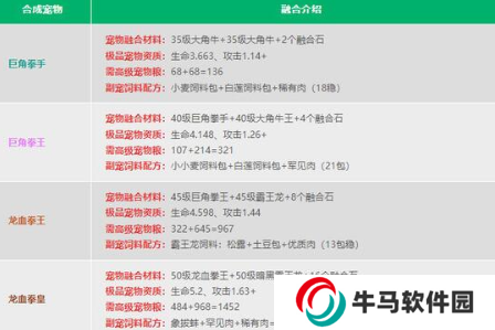 巨角拳王:40級(jí)巨角拳手+40級(jí)大角牛王+4個(gè)融合石