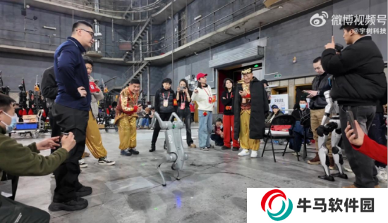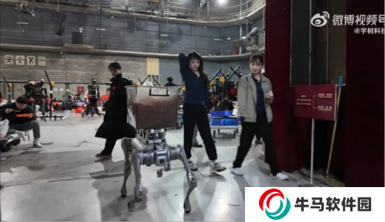 此外,在官方發(fā)布的彩排視頻中,我們還能看到宇樹(shù)科技旗下機(jī)器狗產(chǎn)品 Go2,以及人形機(jī)器人產(chǎn)品 G1 前來(lái)“探班”,并且,Go2 機(jī)器狗不僅給大家現(xiàn)場(chǎng)表演節(jié)目,還能運(yùn)輸物品,真可謂是“賣萌”“干活”兩不誤。