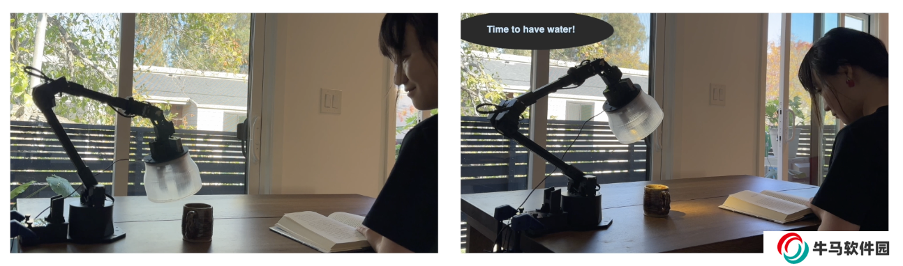 例如,當(dāng)他人問(wèn)機(jī)器人當(dāng)天的天氣如何時(shí),機(jī)器人會(huì)先望向窗外,然后給出天氣預(yù)報(bào);當(dāng)他人表示打算去遠(yuǎn)足時(shí),機(jī)器人會(huì)“顯得有些傷心”;機(jī)器人還會(huì)將桌面的杯子推向人,以提醒他們多喝水;機(jī)器人看到人正在組裝 3D 打印機(jī)時(shí),會(huì)在墻上投射相關(guān)的教學(xué)視頻。