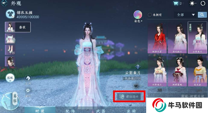 1、玩家在游戲內(nèi)的外觀頁面,選擇指定的服飾或者發(fā)型,點擊右下角的【前往設計】即可進行DIY染色了。
