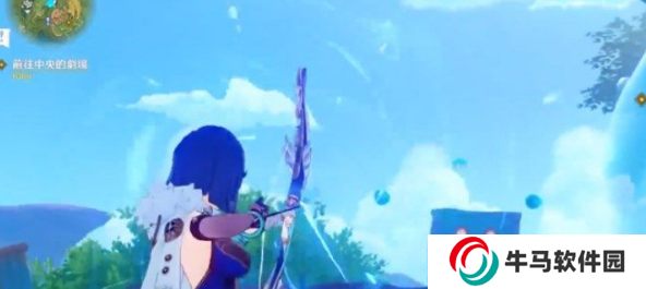 2、第一個(gè)水靈就在寶箱的左側(cè),在空中有三個(gè)史萊姆,我們使用弓箭射擊,擊中后就會(huì)出現(xiàn)第一個(gè)水靈;