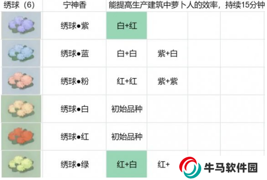 1、繡球(藍(lán)色背景的花是稀有花,合成幾率比較小):