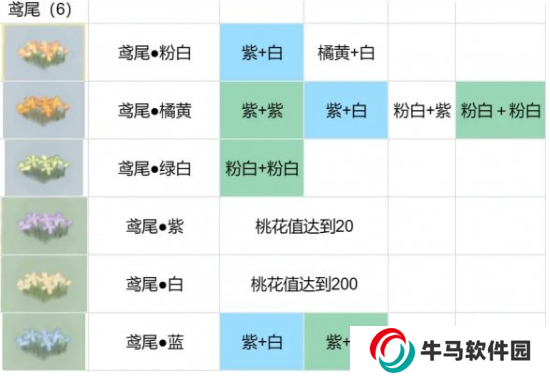 4、鳶尾(藍(lán)色背景的花是稀有花,合成幾率比較小):