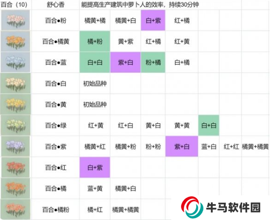2、百合(藍(lán)色背景的花是稀有花,合成幾率比較小):