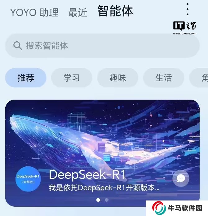 想體驗這個功能的用戶,可以在喚醒 YOYO 后將手機底部往上拉進入“智能體”板塊,點擊“DeepSeek-R1”即可。