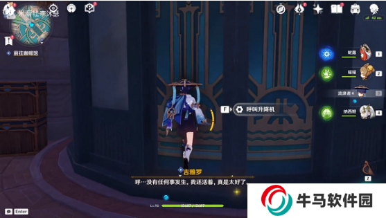 3、看完劇情之后到達一個升降機的門口,需要先完成對話,然后乘坐這個升降機到一層;