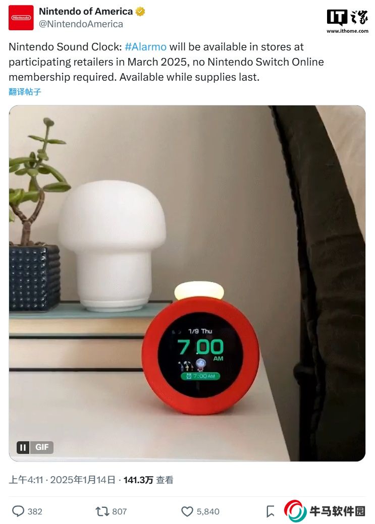 本站 1 月 15 日消息,任天堂美國(guó)官方 X 賬號(hào) 14 日宣布,其“Alarmo”體感鬧鐘將于今年 3 月在“參與零售商的商店”開售,用戶無需訂閱 Nintendo Switch Online 或