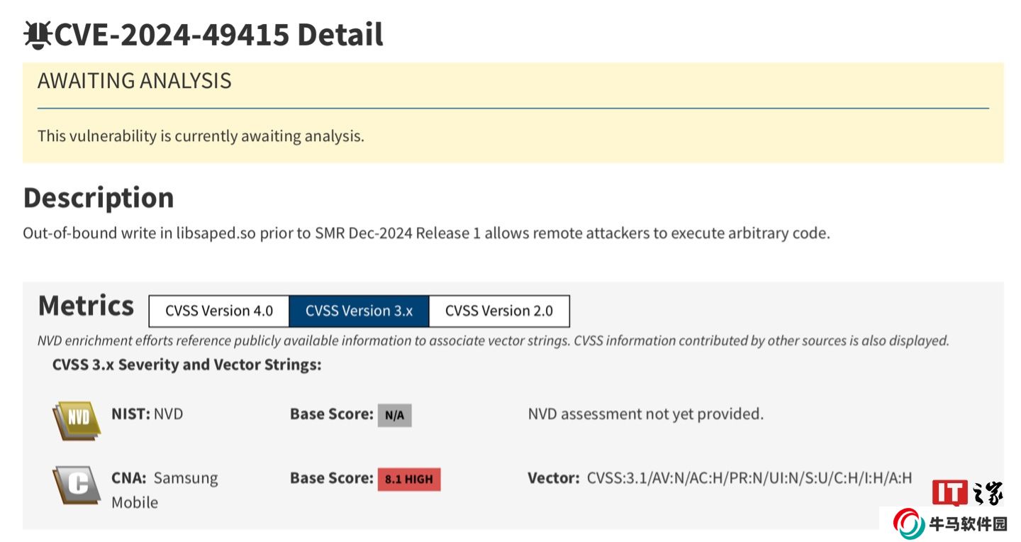 本站 1 月 14 日消息,谷歌Project Zero 團(tuán)隊(duì)發(fā)文,披露了三星海外版本手機(jī)存在的一個(gè)高風(fēng)險(xiǎn)內(nèi)存越界寫入(OBW)漏洞 CVE-2024-49415,該漏洞位于 Monkey s Aud