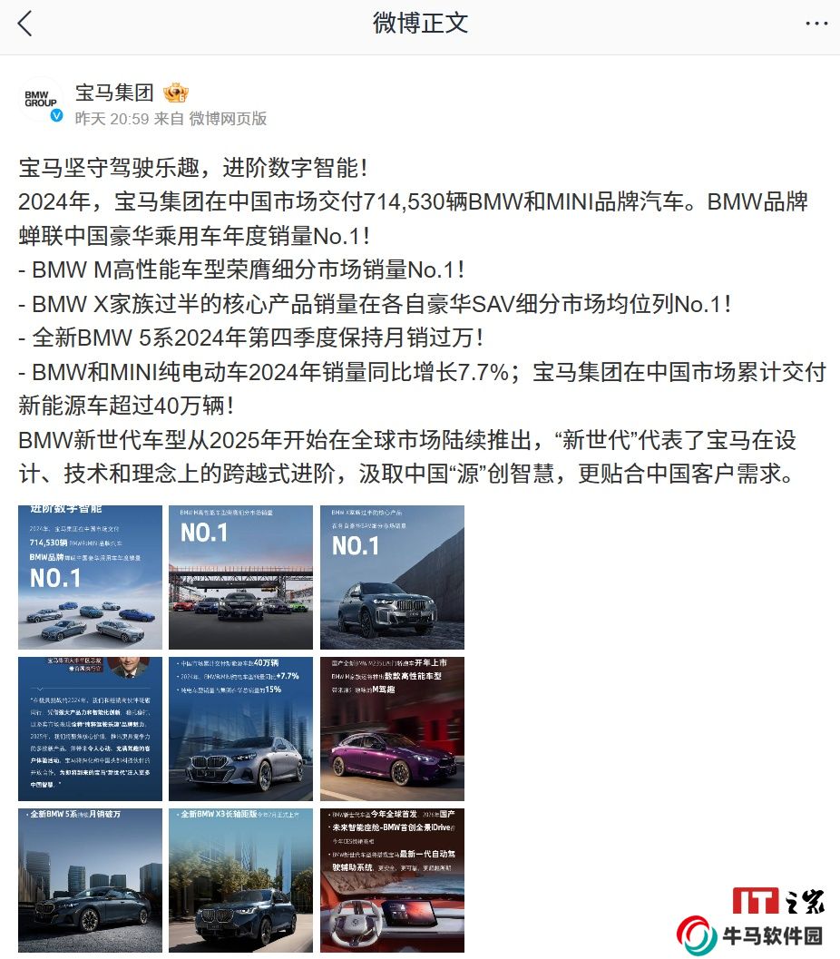 寶馬集團 2024 年國內交付超 71 萬輛汽車,BMW 品牌蟬聯中國豪華乘用車年度銷量 No.1