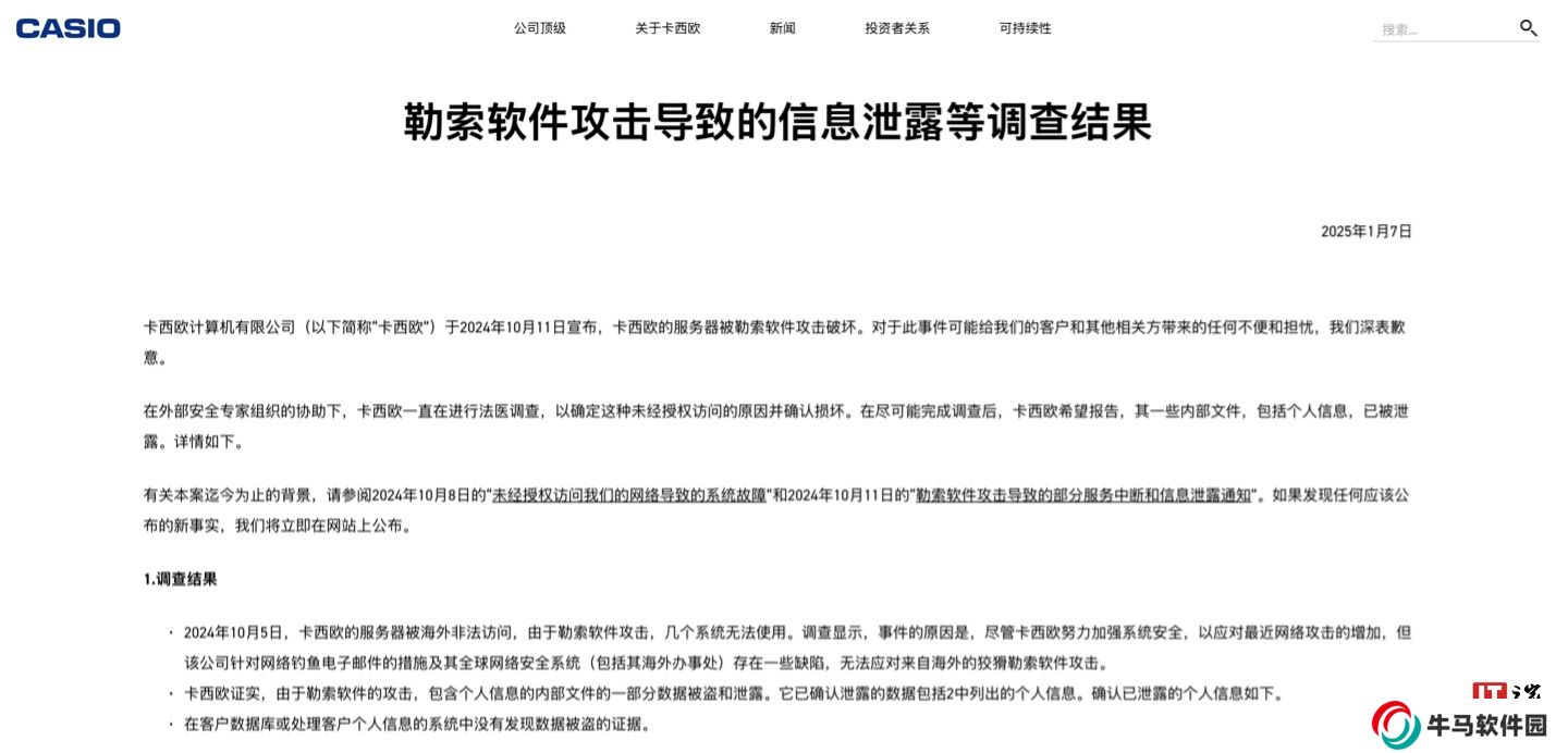 卡西歐遭黑客入侵事件報(bào)告發(fā)布:近 8600 名員工 / 客戶隱私信息泄露、公司部分系統(tǒng)尚未恢復(fù)