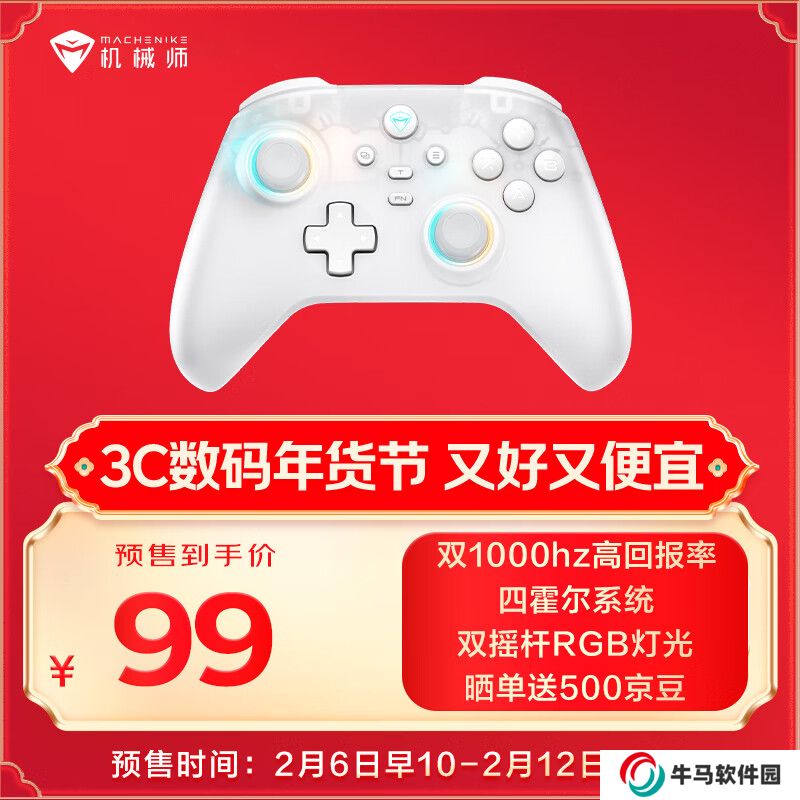 本站 1 月 24 日消息,機械師現已在京東上架一款型號為 G3 V2 的三模游戲手柄,該手柄主打“四霍爾系統(tǒng)、雙 1KHz回報率”,定價為99元,另可選帶有充電底座的套裝版本,定價為129元。京東機