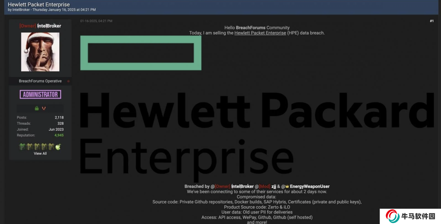 本站 1 月 24 日消息,據外媒Bleeping Computer報道,曾攻擊思科、AMD 等多家知名企業(yè)的黑客組織IntelBroker,近日在地下論壇上兜售一批據稱來源于慧與科技(HPE)的內部