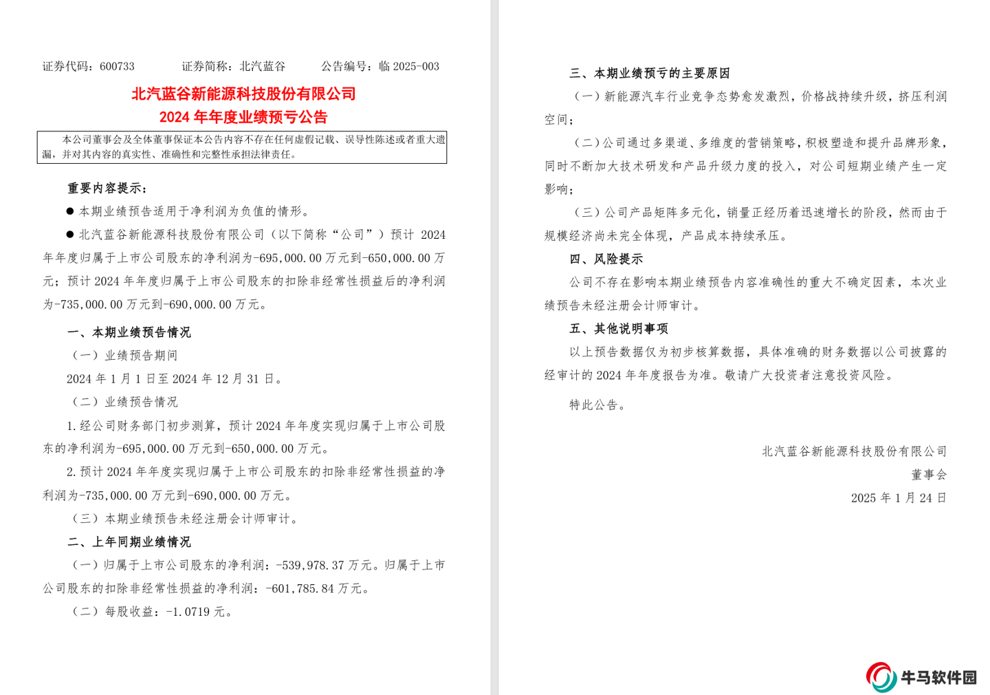 感謝本站網(wǎng)友 某咸魚的小號(hào)、西窗舊事、HH_KK 的線索投遞! 本站 1 月 24 日消息,北汽藍(lán)谷今日晚間公告,預(yù)計(jì) 2024 年年度歸屬于上市公司股東