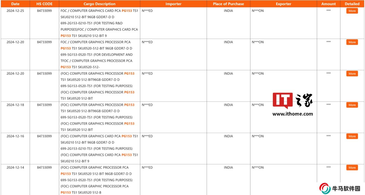 512 Bit 位寬 96GB 容量 GDDR7 顯存,英偉達 PG153 測試樣卡現(xiàn)身海關數(shù)據(jù)