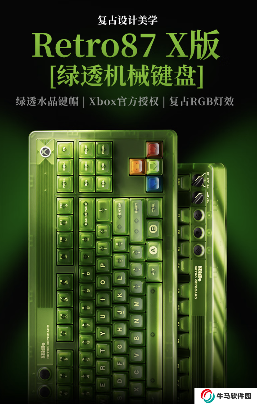 八位堂 Retro 87 X 微軟 Xbox 授權(quán)綠透鍵盤開售:Top 結(jié)構(gòu) + 凱華水母段落軸,779 元