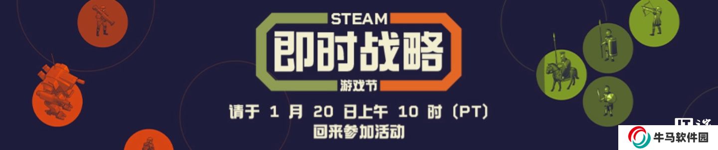 本站 1 月 18 日消息,V社今天宣布將于北京時間 1 月 20 日凌晨 2 點至 1 月 27 日凌晨 2 點舉辦 Steam 即時戰(zhàn)略游戲節(jié)活動,目前官方已公布宣傳片,并上線對應(yīng)活動頁面,本站隨