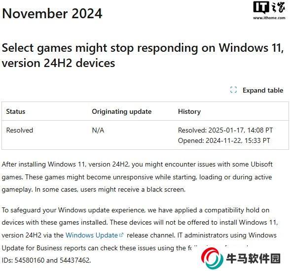 微軟:育碧游戲在 Win11 24H2 上停止響應或黑屏的 Bug 已修復