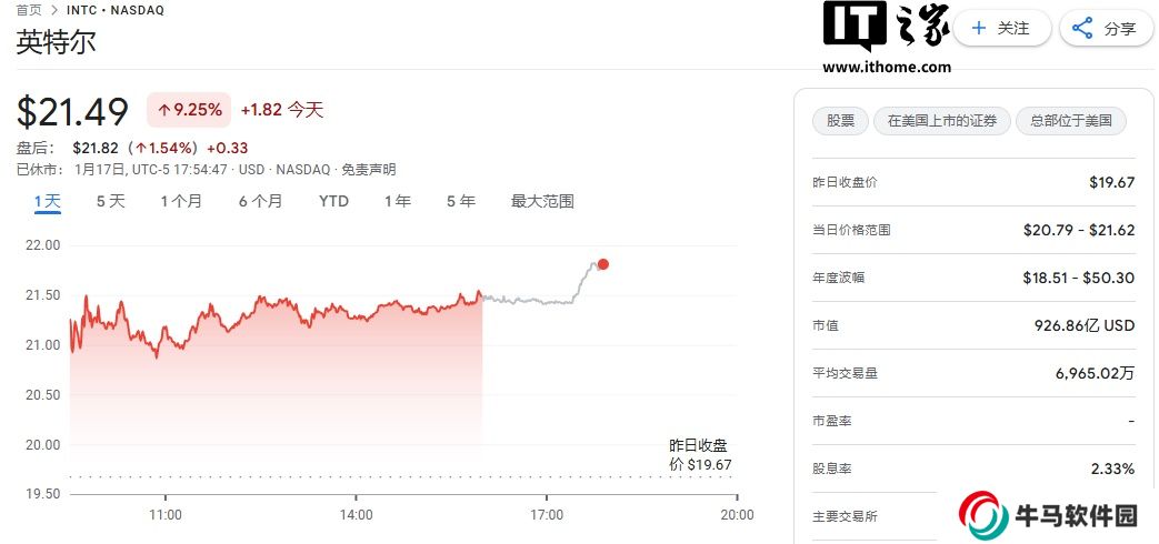 英特爾股價(jià)因“被神秘買(mǎi)家收購(gòu)”傳聞而上漲 9.25%