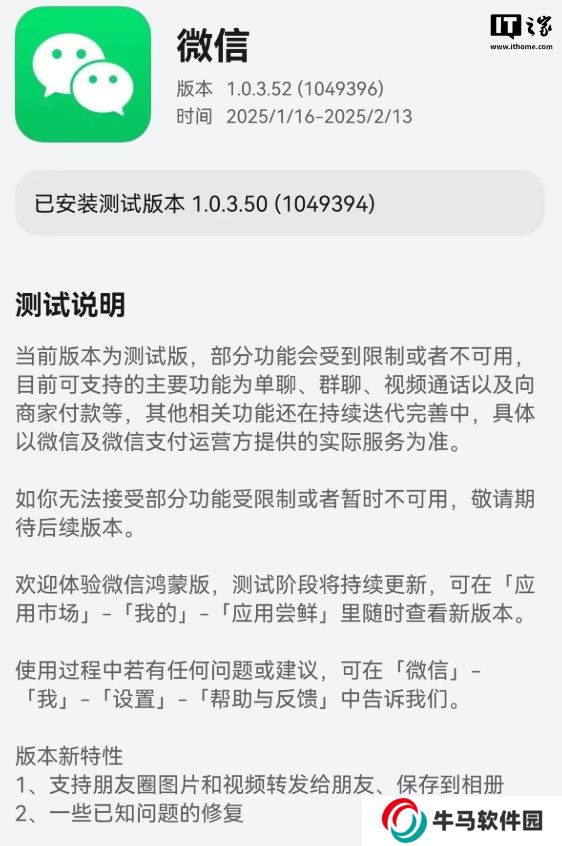 微信純血鴻蒙版 App 獲 1.0.3.52 邀測(cè)升級(jí),支持朋友圈圖片和視頻轉(zhuǎn)發(fā)給朋友