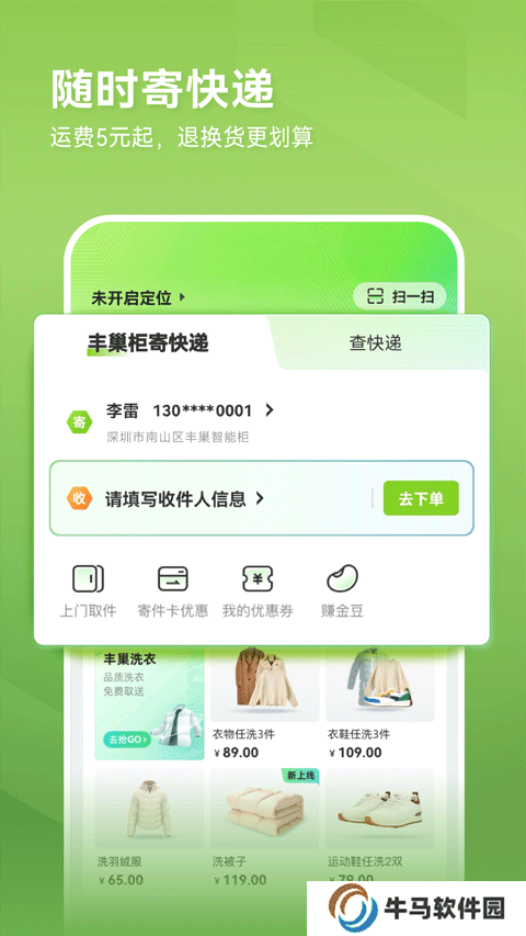 2、只要線上輸入寄件人和收件人的個(gè)人信息,將快遞放入豐巢柜中,即可輕松寄出。