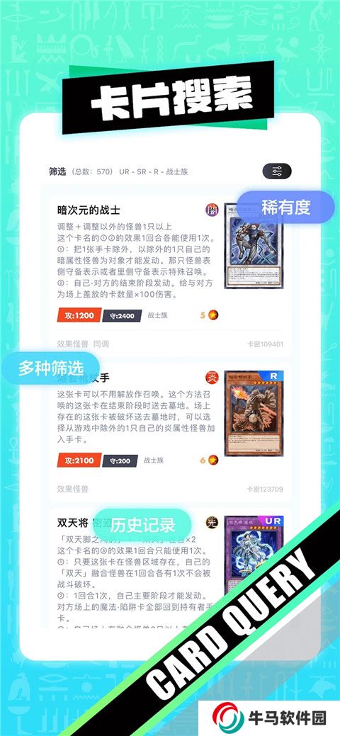 1、詳盡的卡片信息,包括最新的OCG和TCG環(huán)境,確保能獲取最新的游戲信息。