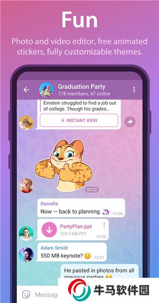 telegeram安卓中文版,支持中文聊天,來(lái)以更加舒適的方式來(lái)進(jìn)行交流通訊,零門(mén)檻去與國(guó)際友人進(jìn)行交流通訊,超強(qiáng)的即時(shí)翻譯功能不用會(huì)擔(dān)心存在語(yǔ)言不通的情況而影響通訊。在聊天時(shí)隨意發(fā)送不同格式的媒體和文件,同時(shí)也不會(huì)存在大小的限制,如果可以的話你還能自主選擇將聊天同步到云端上,以此在不同的設(shè)備上也能登錄個(gè)人賬號(hào)來(lái)流量個(gè)人消息。