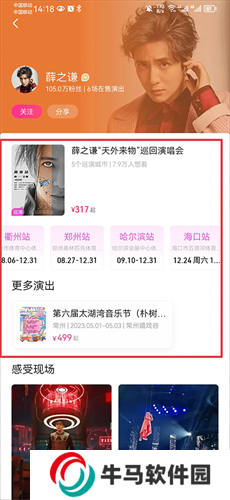 2、搜索出來后點擊進(jìn)入他個人主頁中就可以看到他的所有演出安排了。