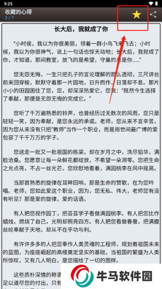 3、點擊想要取消收藏的篇幅,如《長大后,我就成了你》,點擊圖示“黃星”位置
