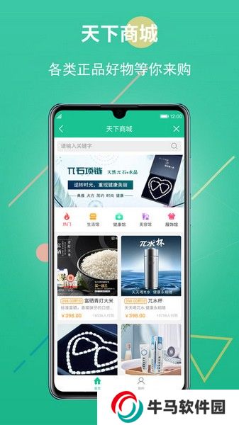 2、電商購物,設(shè)有“天下商城”,提供豐富多樣的商品資源,可在線購買所需商品。