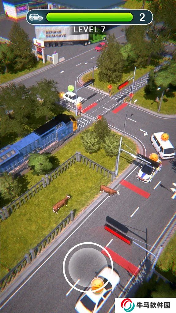1. 玩家需要觀察道路上的車輛動態(tài),通過點(diǎn)擊或滑動屏幕來指揮車輛行駛、停車或轉(zhuǎn)彎。