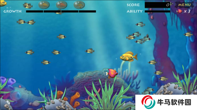 2. 躲避追捕:玩家需要小心避開比自己大的魚的追捕,否則會成為它們的食物。
