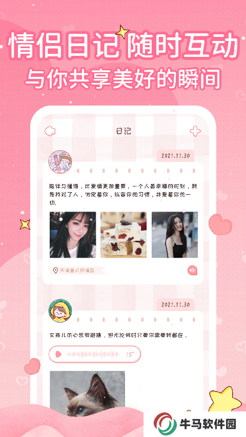 1、能夠直接去記錄各種甜蜜的戀愛瞬間,保留許多有意義的戀愛事件。