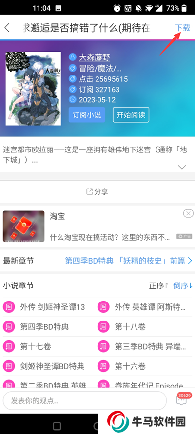 1、找到《輕小說》功能欄里,點(diǎn)擊進(jìn)去找到自己想要下載的小說。