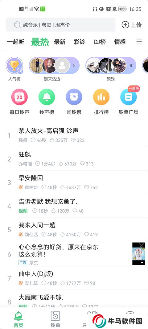1、軟件會(huì)定期根據(jù)熱門歌曲榜單制作全新的手機(jī)鈴聲,每日都會(huì)更新1000+的不同手機(jī)鈴聲。