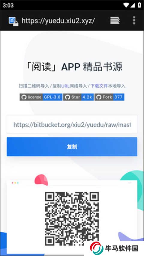 7、這里以【https://yuedu.xiu2.xyz】書源為例,首先點(diǎn)擊復(fù)制里面的鏈接,