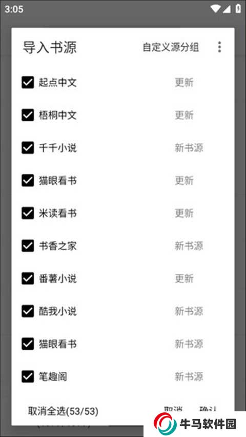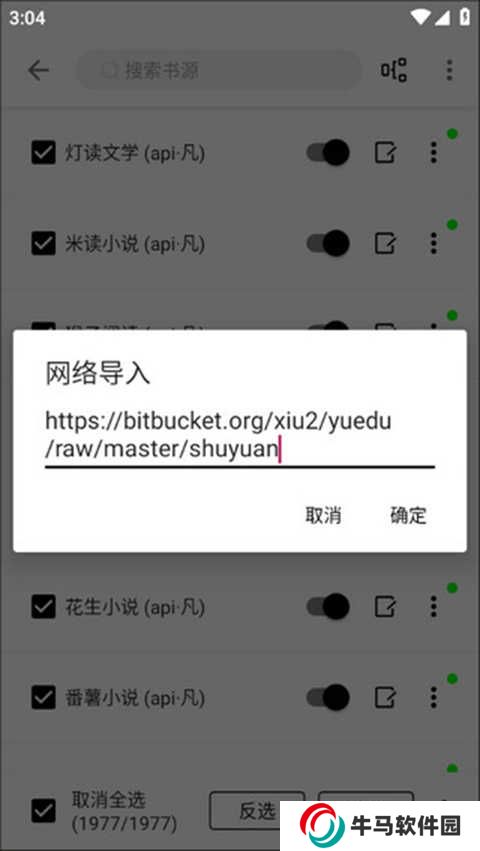 9、如圖,可看到新增的導(dǎo)入書源信息,我們?nèi)抗催x后選擇右下角【確認(rèn)】選項(xiàng),