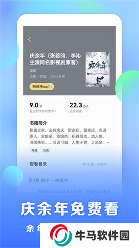 1、海量免費(fèi)小說(shuō)、正版圖書(shū)任你選,時(shí)下經(jīng)典完結(jié)榜及熱門(mén)原創(chuàng)熱榜,隨時(shí)都能閱讀。