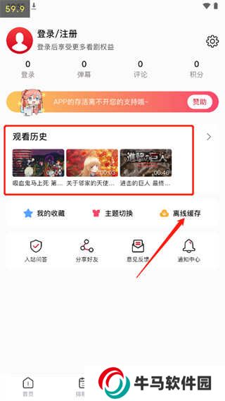 6、最后在我的頁面中,可以查看到我們的觀看歷史及緩存動漫。